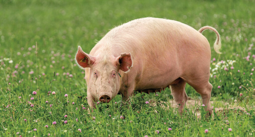 Pigs are prolific. A single sow can mother up to 100 piglets, far more than sheep, goats, or cows, and their offspring can reach maturity in about six months. They require less than half the amount of water needed by a cow or a horse, making them more drought tolerant. In many parts of the globe, past and present, pigs root through trash, converting noxious garbage into nutritious food. Today, one billion pigs are slaughtered annually to produce a wide array of food products, including pork chops, ham hocks, bacon, and lard.